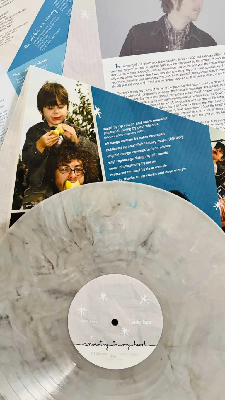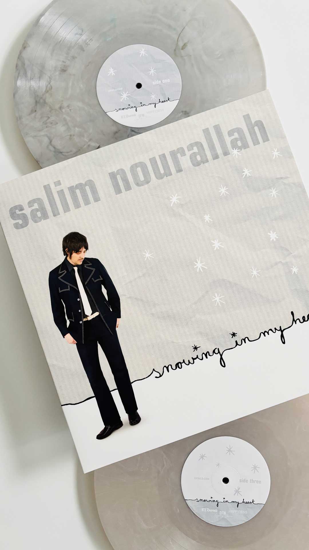 Salim Nourallah’s acclaimed 2007 album Snowing in My Heart is now available on vinyl for the first time ever from DFW Legacy Series! Celebrated for its heartfelt songwriting and lush production, the record now gets the treatment it deserves — remastered for vinyl by renowned audio engineer Dave McNair. The deluxe 2LP version is pressed on colored vinyl, in a gatefold jacket with two lyric inserts, and includes a second disc of bonus tracks that were considered for the original release, but not included.