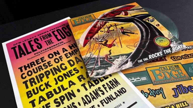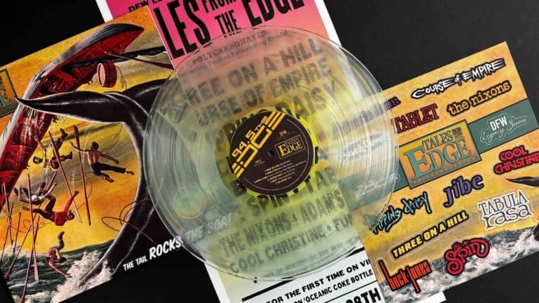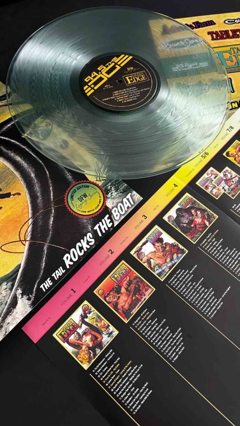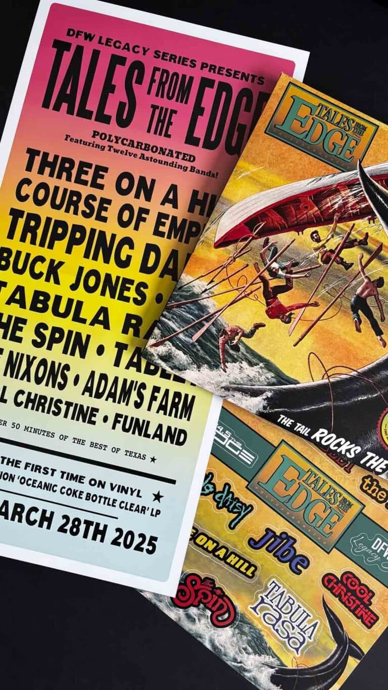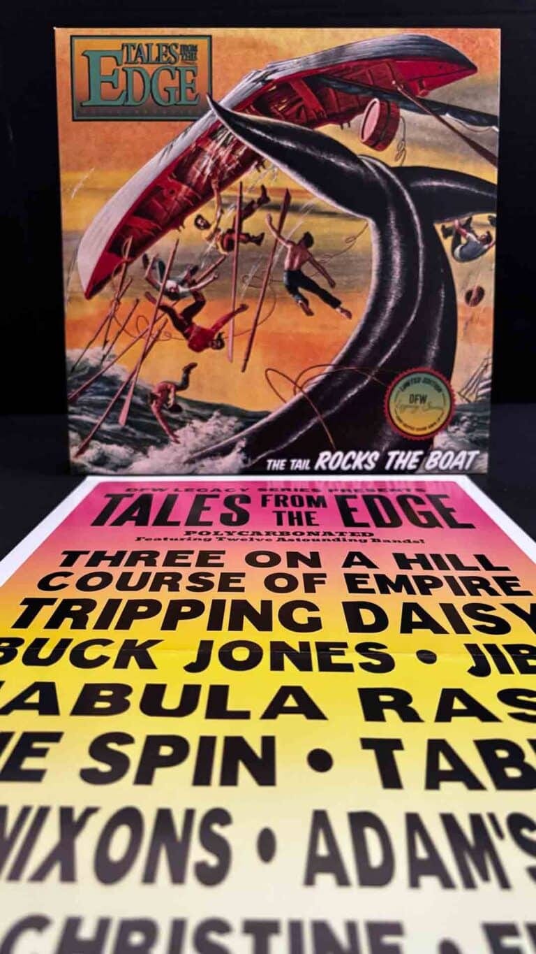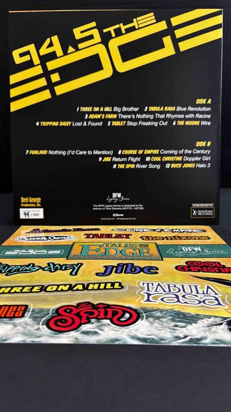 11 volumes in 5 years, 199 tracks in all (many for the first time on record), selling over 100K total copies. To this day ‘Tales’ has a cult-like fanbase, as the CDs introduced countless bands that would go on to define the local music scene of that era. Now, over 30 years later the DFW Legacy Series is excited to honor ‘Tales From The Edge’ with the first ever vinyl pressing of selected tracks from the original CD compilations.